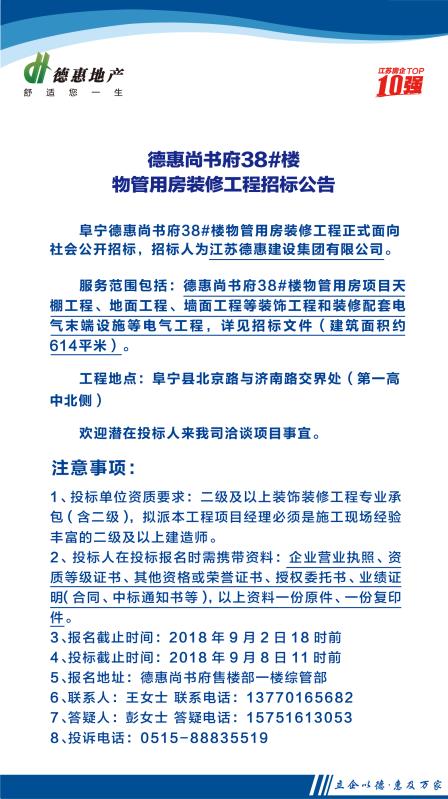 德惠尚书府38#楼物管用房装修工程招标公告