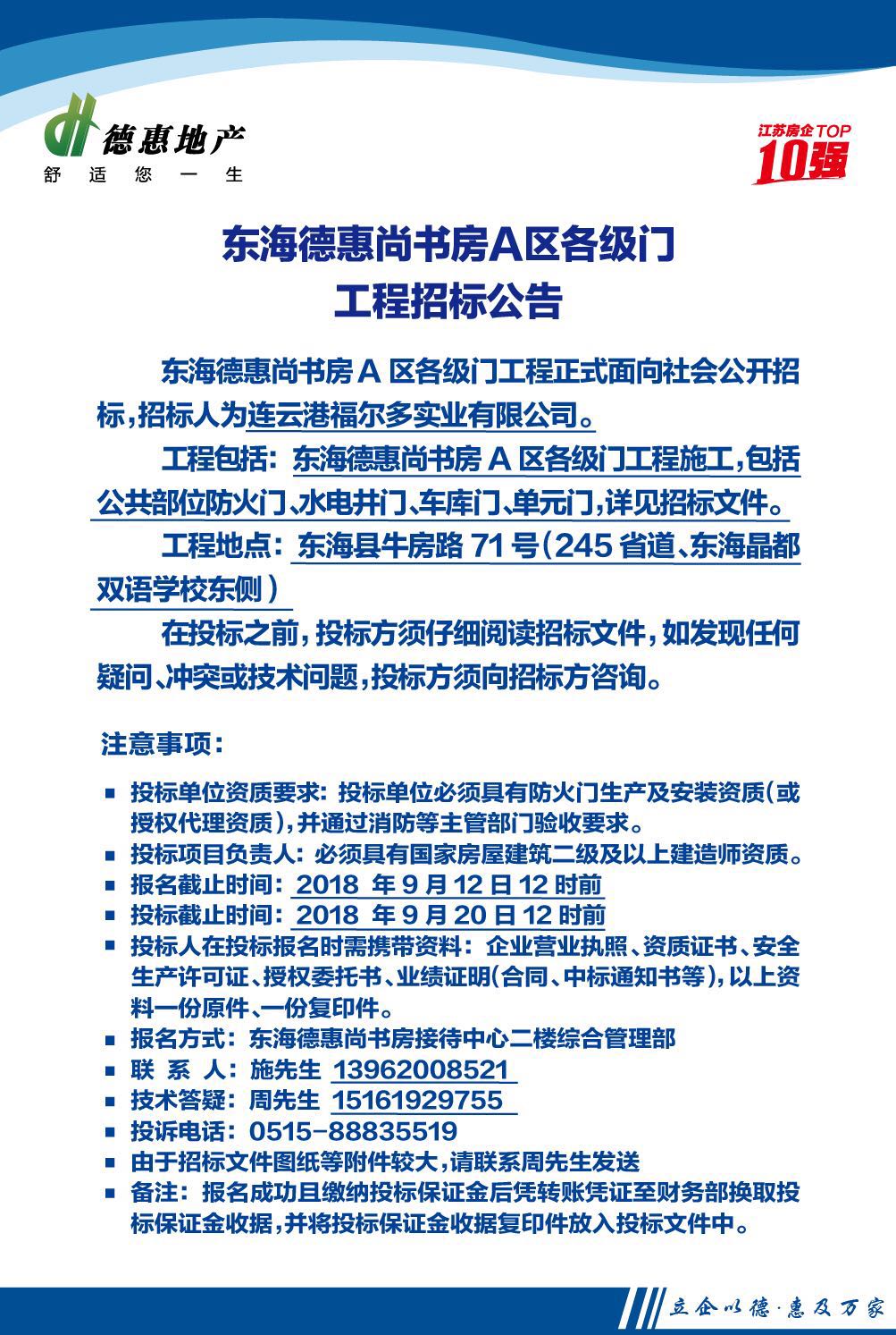 东海德惠尚书房A区各级门工程招标公告