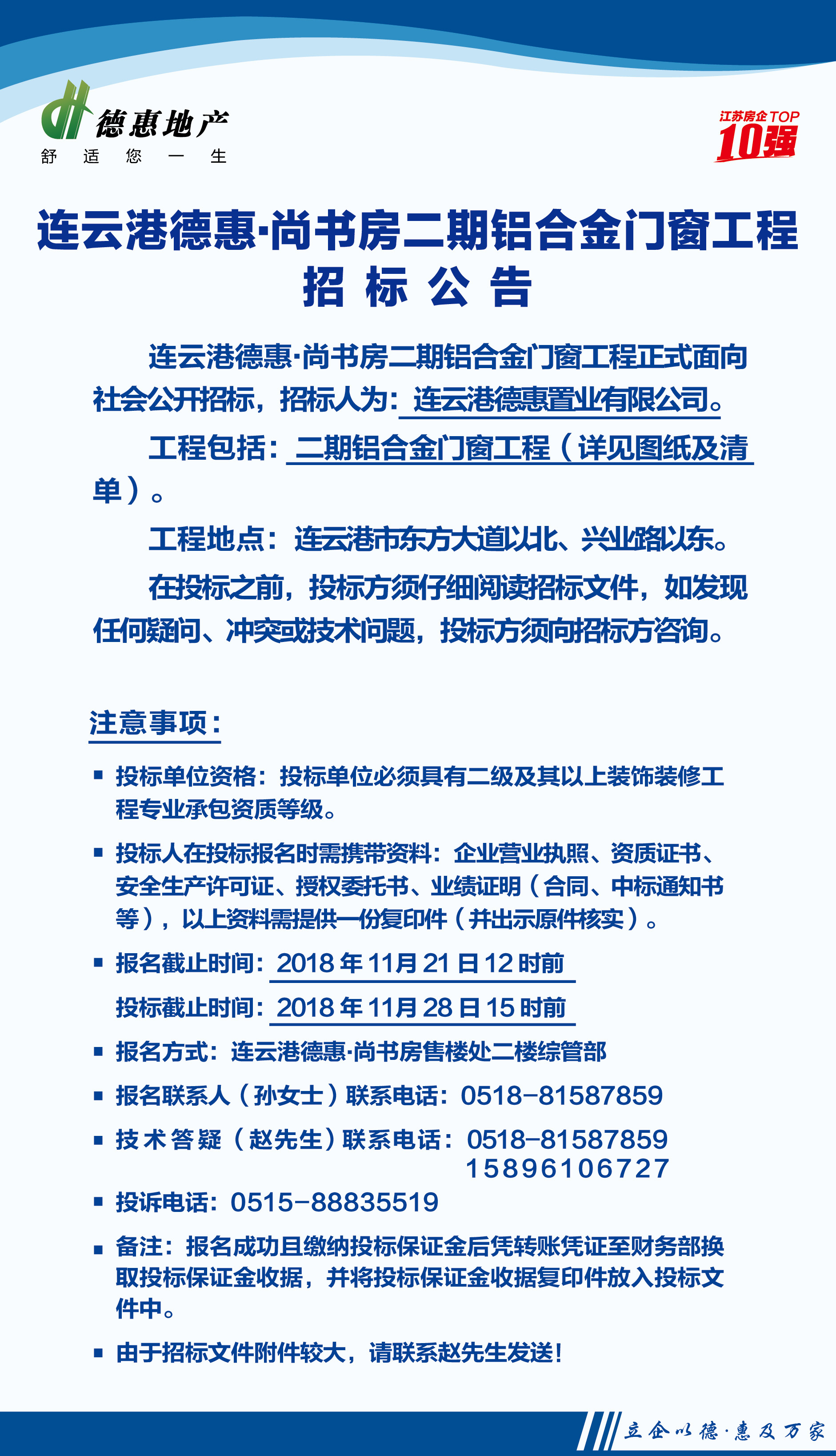 连云港东海德惠尚书房二期铝合金门窗工程招标公告
