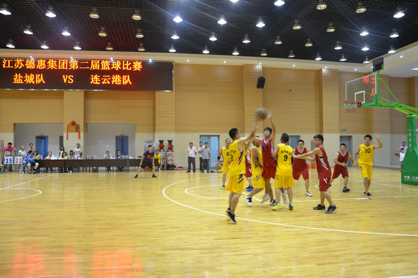通过短期的特训与磨合,阜宁、连云港代表队整装待发,跃跃欲试;赛前热身,双方队员不甘示弱,气压全场;一声哨令,“德惠杯”第二届篮球赛总决赛“号角”吹响,“战事”拉开。赛场上,队员激烈比拼,竞相角逐;赛场外,观众激情高涨,呼声一片。运球、过人、传球、投篮……每一个娴熟的动作都在火热七月的赛场留下了瞬间的精彩。