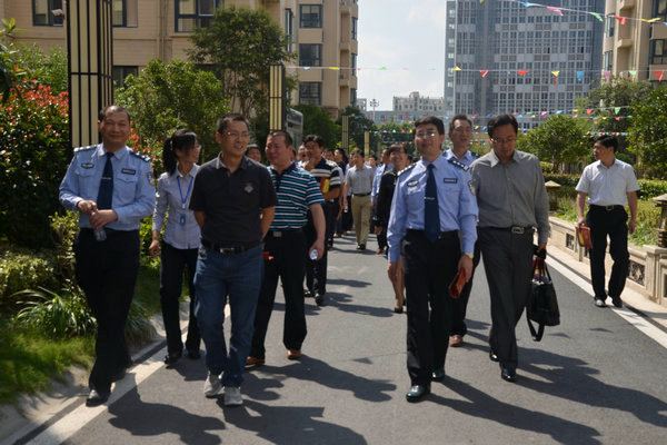 9月30日,省公安厅、盐城市公安局及九个县市区公安局主要领导莅临壹品仕家小区指导技防建设工作,我集团监事会主席、德惠物业公司总经理叶为利,集团副总经理孙晓莉、德惠物业经理朱效东等相关负责同志陪同视察。