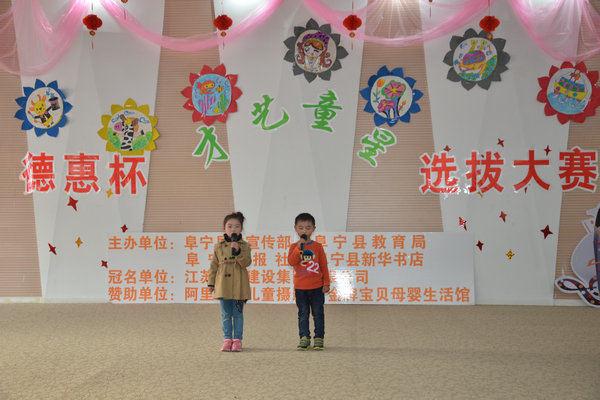 10月25日,“德惠杯”才艺童星选拔大赛第四场在阜宁新城幼儿园完美落下帷幕。 想唱就唱,唱的响亮 整装待发 “掌声在哪里” 甜美小天后 上下一台戏 小画家们认真作画 动感小天后 共舞“最炫名族风” “看谁画得好” 深情朗诵 童星们合影留念