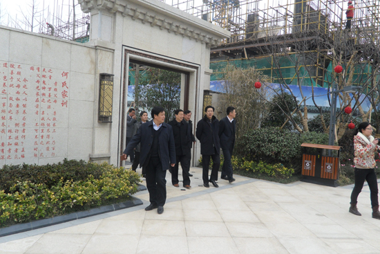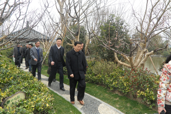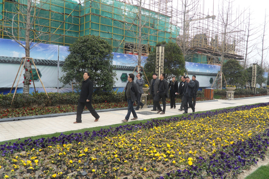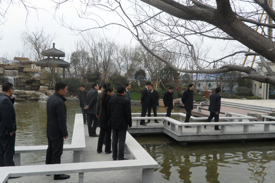 3月28日,阜宁县住建局局长宗光华率领住建局主要领导、人民评议员考察团莅临德惠·尚书房中央园林景观区指导建设工作。江苏德惠集团副总经理孙晓莉陪同视察,并介绍尚书房园区景观绿化建设情况。