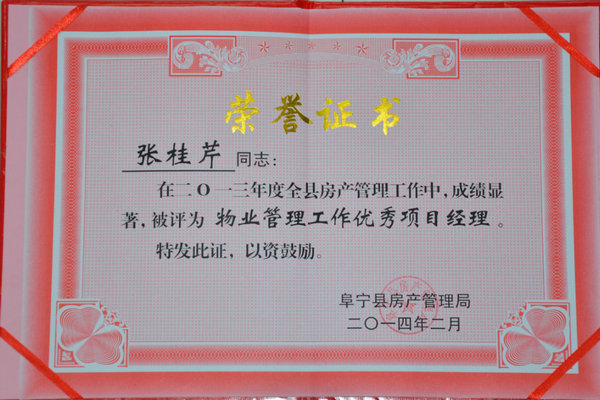 在全县2013年度房地产管理工作中,江苏德惠建设集团有限公司新城分公司、江苏德惠物业管理有限公司因成绩突出,口碑良好,被县房产管理局分别授予“商品房销售先进单位”、“物业管理先进单位”光荣称号;德惠物业公司副经理张桂芹同志因成绩显著,被评为“物业管理工作优秀项目经理”!