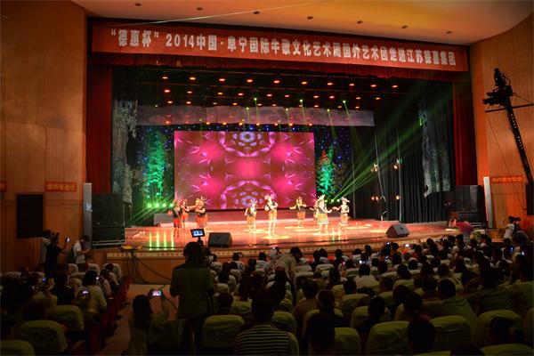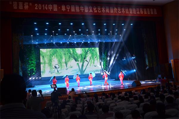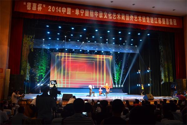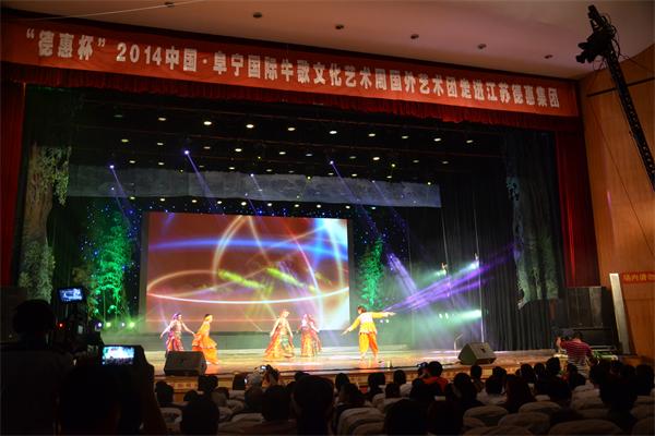 5月17日上午9时,江苏德惠建设集团主办的“德惠杯”2014中国·阜宁国际牛歌文化艺术周走进江苏德惠集团文艺演出活动在阜宁县文化中心拉开帷幕,此次活动特邀请了俄罗斯、罗马尼亚、印度、斯里兰卡珍宝等9家国外艺术团参加,除了外国友人带来的精彩表演,与外国艺术团同台表演的还有我们德惠的员工们:活力四射的《最炫民族风》;富有江南色彩的《烟花三月》;整齐有力的队列展示《我们的风采》都赢得了外国友人的认可,他们共同为在场的一千多位观众打造一场精妙绝伦的华丽盛宴。