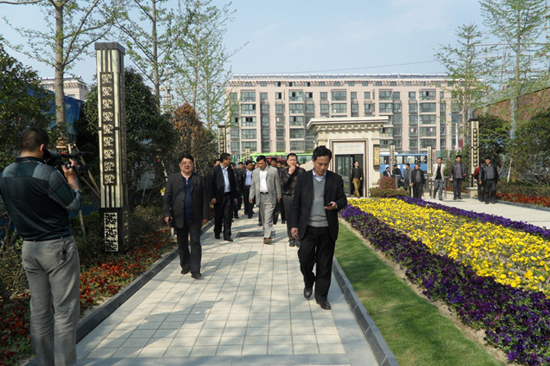 为加快城市化步伐,创建省级文明城市,建设水绿阜宁,创造和谐家园,县建设系统领导干部、县内开发单位政企联盟,组织大型环城社区观摩活动。 4月25日,县房管局局长白晓华带领主要领导、县内数家开发单位负责人考察团莅临德惠·尚书房、壹品仕家小区参观指导工作。德惠集团副总经理孙晓莉、德惠物业经理朱效东陪同参观,并介绍了集团强化绿化管理的具体做法和远景规划。 孙总表示,德惠集团作为发展中的房地产开发企业,不仅是要为百姓建造优质的房子,更要担当起城市艺术家的角色,致力于城市现代化建设,让生活变得更美好。多年来,德惠专注细节,追求品质,精心铸就一支专业的园艺设计队伍,经过时间的磨砺,成功塑造“省级园林式居住区”壹品仕家,建设中的壹品仕家升级版德惠·尚书房中央园林实景已完美绽放……我们倾力打造高舒适度的人居环境,永恒追求人与自然和谐共融。 德惠·尚书房、壹品仕家小区的绿化建设赢得了各位领导的一致认可。白局认为,从政府的角度出发,开发商的责任应当是为城市建设创造无限的价值。每一个项目的开发,意味着即将带动一个区域的发展。壹品仕家的成功典例、在建中的德惠·尚书房建筑设计、绿化建设等很多方面值得我们借鉴和学习。南城区的开发项目正如火如荼地建设中,希望我们的开发商在推进城市绿化建设上多思考、多下功夫。 德惠·尚书房参观现场