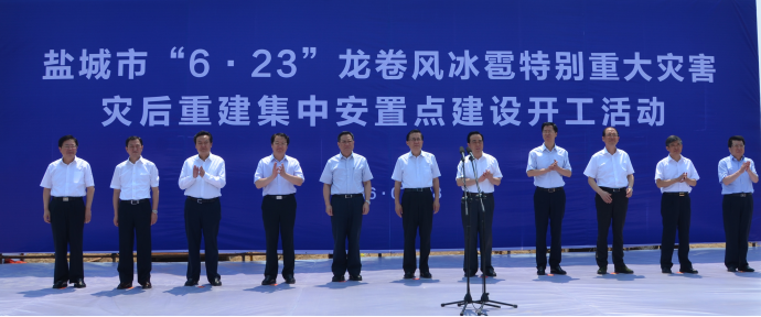 7月28日上午10:30,盐城市“6•23”龙卷风冰雹特别重大灾害灾后重建工作动员大会暨集中安置点建设开工活动在阜宁计桥举行。届时市委书记、市人大常委会主任朱克江,市长、市灾后重建指挥部指挥长王荣平,市政协主席李驰等领导人出席会议并作重要讲话。晟功集团作为灾后重建项目的施工单位,在朱文亮董事长的带领下,共有120名工作人员参与了本次活动。 朱克江指出,要以高度的政治自觉,深刻领会并贯彻落实省委省政府主要领导重要批示精神,切实打好灾后重建硬仗,让灾区展新貌、群众得实惠,真正做到让省委省政府放心,让灾区群众满意。在集中安置点建设现场,朱克江、王荣平等亲切看望慰问了我司的工程建设者,并送来了大量的防暑降温物品,要求继续坚持以“质量为本、安全第一”的理念,扎实推进集中安置点建设,安全高效完成各项工作。 在今后的建设过程中,晟功集团一定不负各级领导和群众的殷切期望,大力弘扬救灾精神,切实增强责任意识,始终秉承我集团“立企以德、惠及万家”的发展宗旨,把好安全质量关,扎实推进建设工作,确保如期建成一批布局合理、设施完善、特色鲜明、环境优美的农村新社区!