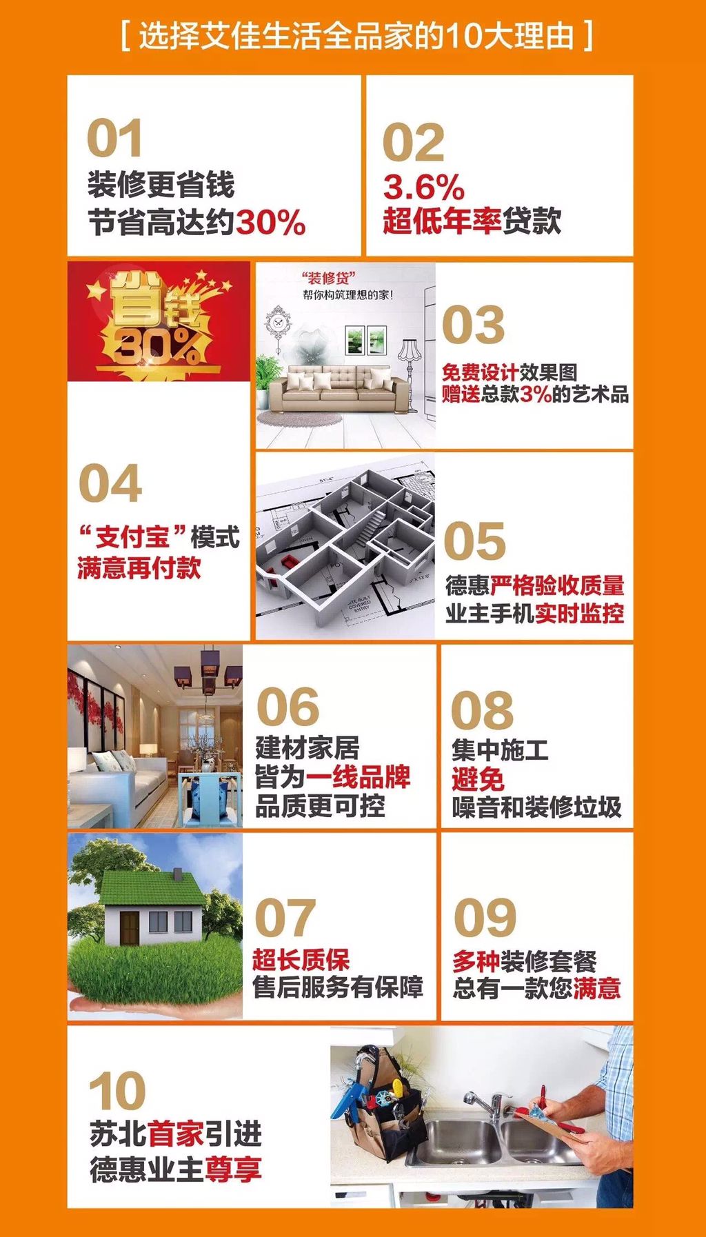 96-118㎡精致全明三房,空间合理无浪费,舒适性和功能性兼具,相比市场同等功能户型,面积减少约10-20㎡,性价比超高! 联袂艾佳生活,城市服务再升级 为了解决业主装修过程中的“烦、痛、累”,有效降低装修费用,江苏德惠集团特将“艾佳生活”首家引入苏北,助力“城市服务商”战略再升级,为业主带来“省钱、省力、省心”的全新装修和生活方式! 艾佳生活采用“定制化+个性化”家装模式,与全国数十家一线知名房企战略合作,直接向品牌家具建材厂商规模化采购,交由品牌家装公司流水化施工,大大降低装修成本。让业主在装修省钱达30%的基础上,实现“拎包入住”的梦想。
