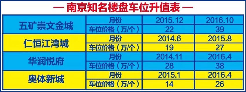 作为一二线代表城市,南京近年车位价格涨幅明显,三四线城市车位价格将紧跟其飞速上涨趋势。