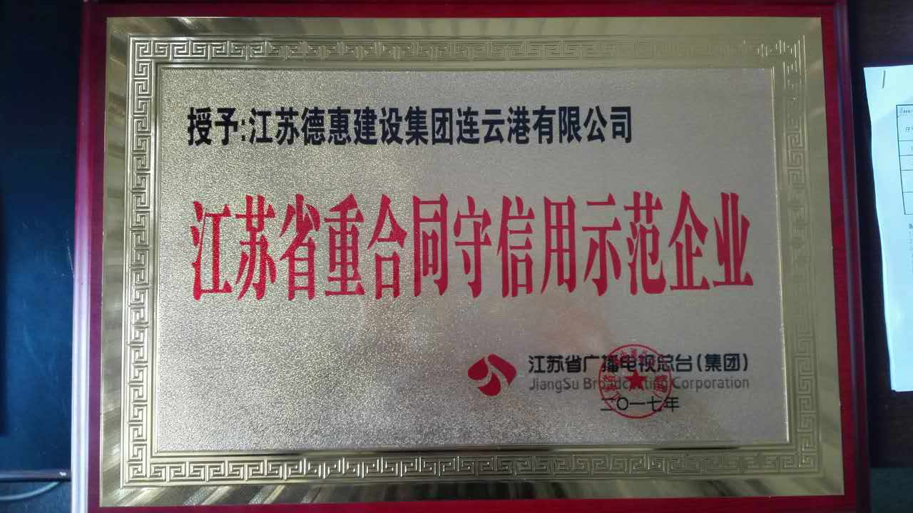 热烈祝贺江苏德惠建设集团连云港有限公司被评为“江苏省重合同守信用示范企业”!