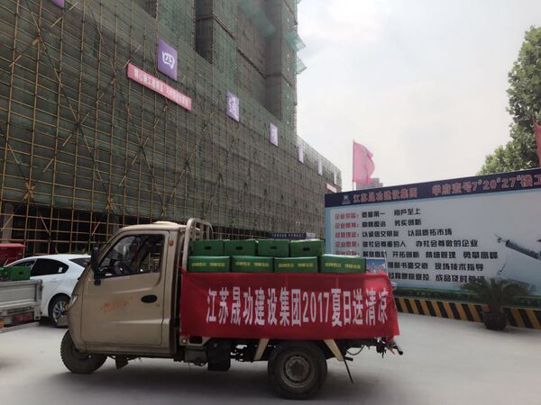 炎炎夏日,骄阳似火也挡不住晟功集团领导心系建设一线员工的匆匆脚步。2017年5月31日下午,为做好夏季安全生产工作,确保一线员工安全度夏,江苏晟功建设集团开展了“夏日送清凉”活动。一辆辆载着香甜可口大西瓜的卡车驶进了江苏晟功建设集团的各项目部工地,给员工们送来了“清凉”,也带来了集团领导们的热切关怀。