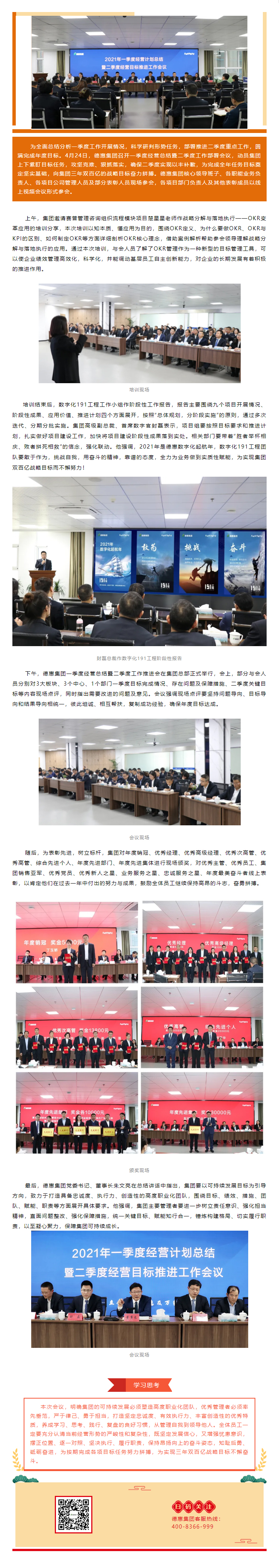 目标坚定 使命必达 | 德惠集团召开一季度经营总结暨二季度经营目标推进会议