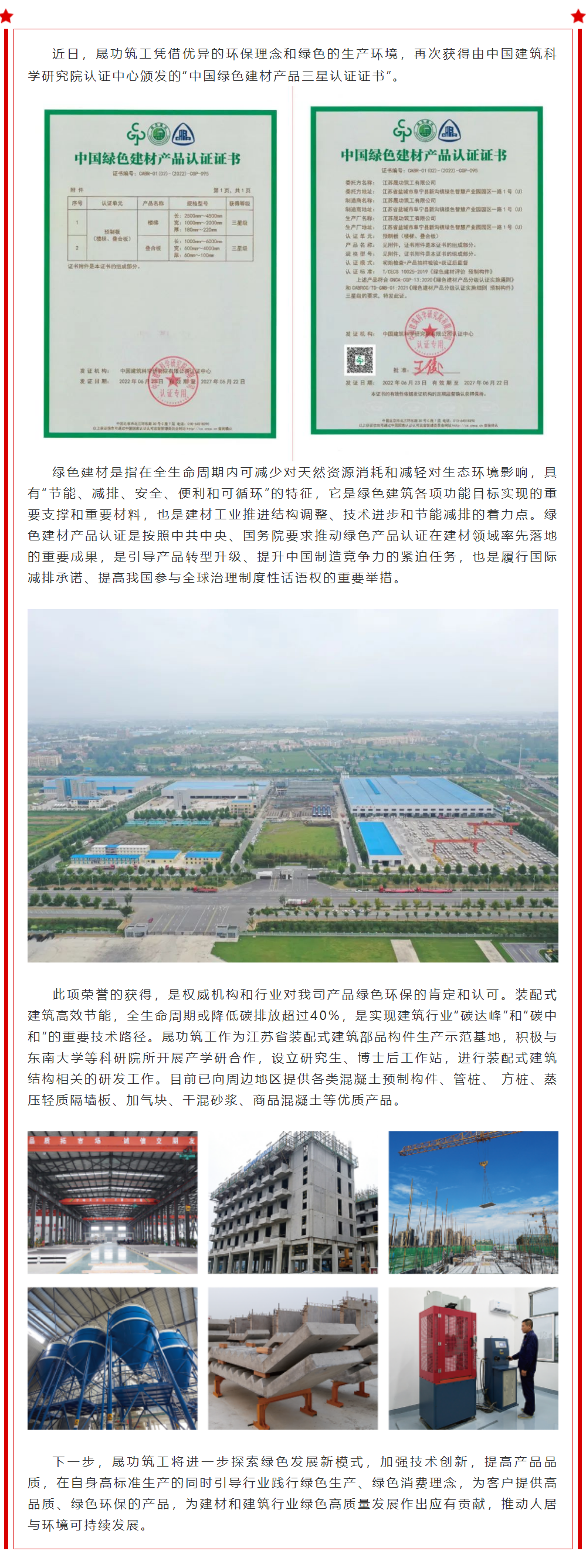 再获殊荣 | 江苏晟功筑工有限公司顺利通过“中国绿色建材产品”三星级认证