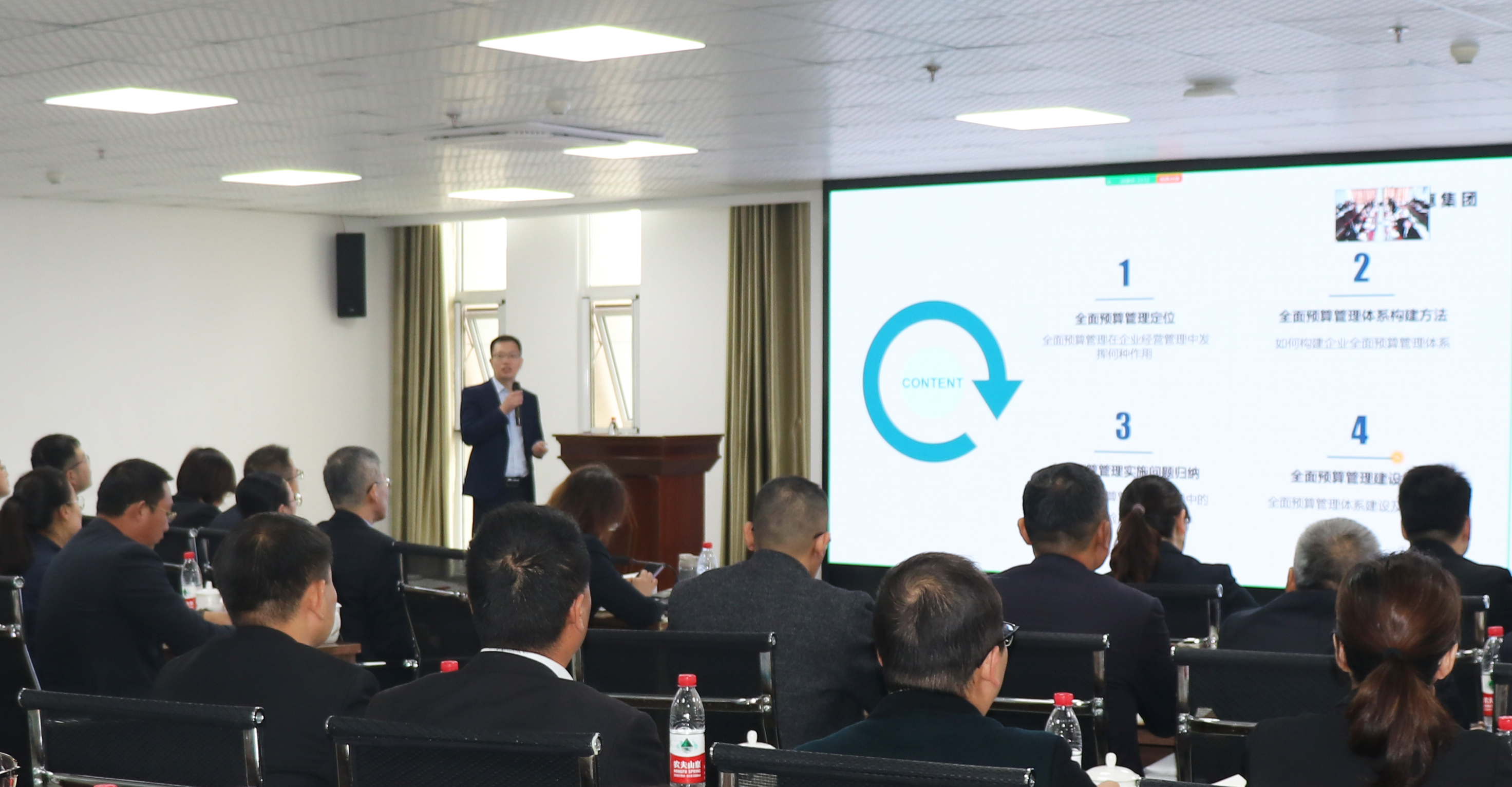 10月29日,德惠集团召开2022年三季度经营总结暨四季度经营目标推进工作会议,全面总结集公司前三季度经营情况,部署四季度目标任务和重点工作。德惠集团党委书记、董事长朱文亮携各业务、各职能负责人及相关管理人员出席本次会议。 上午,集团特邀曹子月专家作《全面预算管理体系建设及实施》的专题培训,从全面预算管理定位、全面预算管理体系构建方法、全面预算管理实施问题归纳、全面预算管理建设规划等方面进行详细讲解,旨在以全面预算管理的大格局,全面提升集团财务管理水平,应对多变的经济时代。他强调,业务是活动,预算是规则,全面预算需与企业战略格局结合起来,考虑实际情况,不要脱离实际,通过预算编制、执行与控制等过程,规范企业经营控制流程,减小企业经营风险,驱动经营与管理。 会议现场