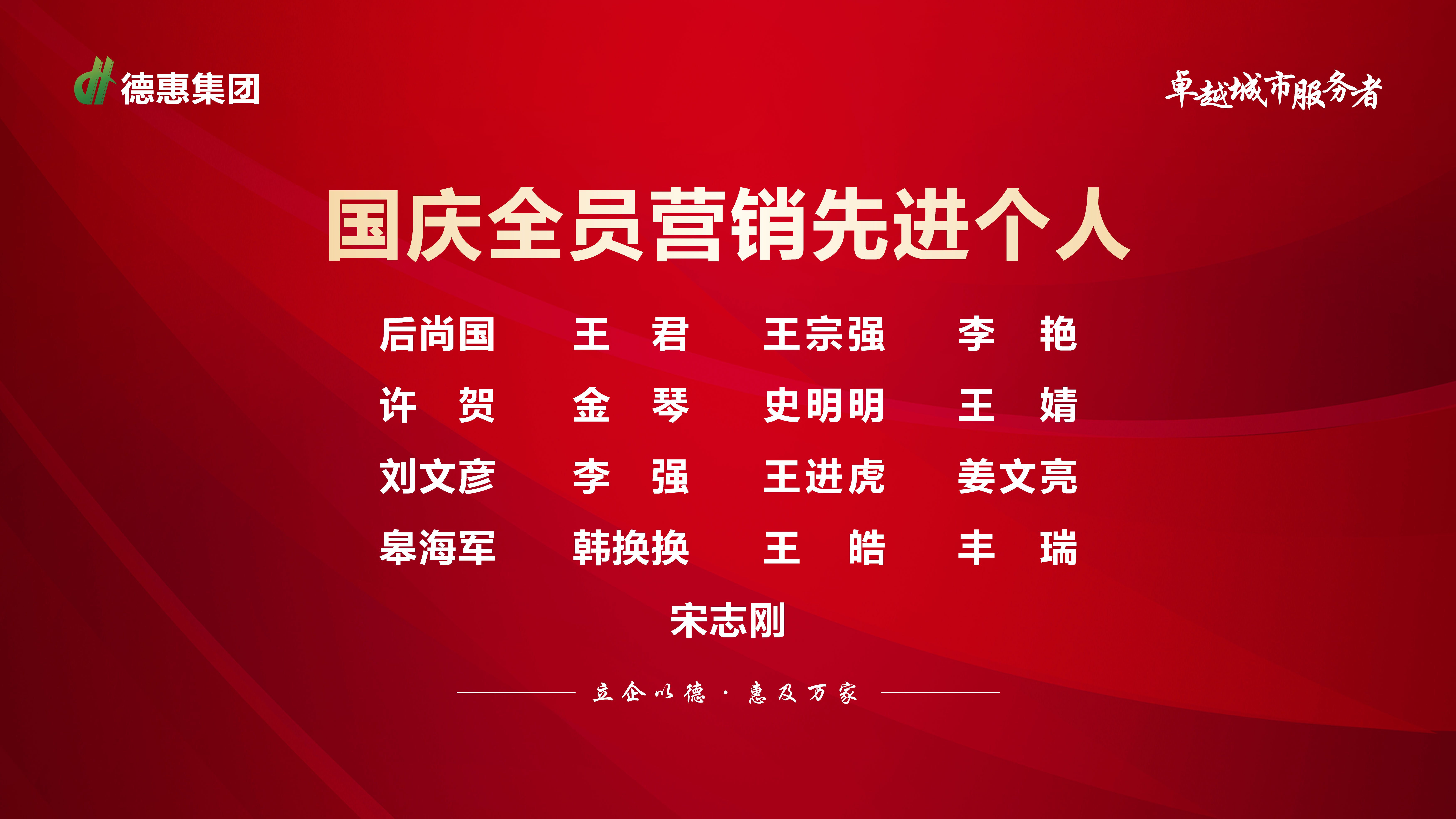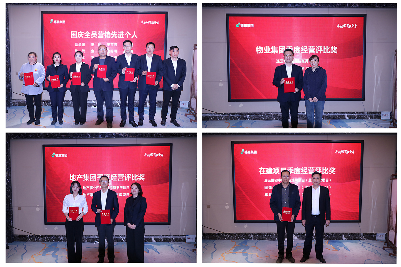 随后,为树立标杆,表彰先进,集团对国庆黄金销售期中业绩明显、思想站位高、解决问题能力强的17位全员营销先进模范进行表彰。